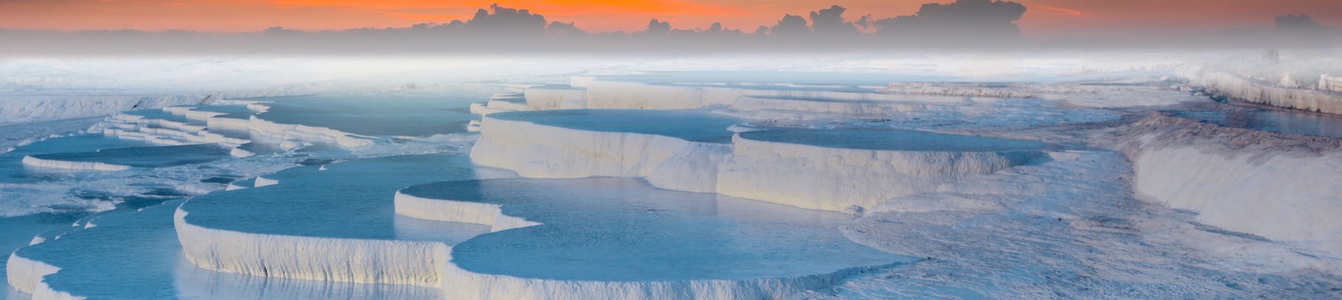 Looking as if covered with a snow-white blanket because of the inherently carbonated water, Pamukkale has also been added by UNESCO to the World Cultural Heritage List. There are numerous spa hotels in the vicinity. Tourists, international and domestic alike, flock to the city almost in all seasons. Other places to visit include the Ancient City of Hierapolis, Yeşildere Waterfall, Keloğlan Cave, and Karahayıt Hot Springs (Red Water). The climate in Denizli is characterized by hot and dry summers, and cold winters. The typically temperate weather of the Aegean Sea does not reach this city due to the mountains encircling it.